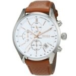 ساعة هوغو بوس للرجال اصلية موديل (جراند بركس) Grand Prix 1513475 لون ابيض واستيك جلد طبيعي لون بنى.