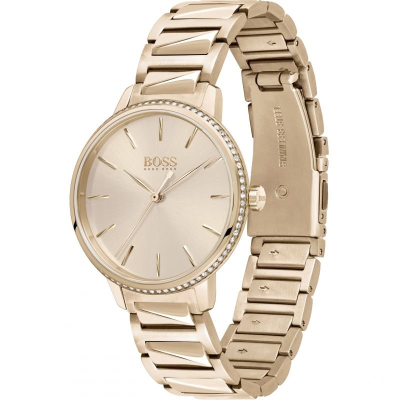 ساعة هوجو بوس للنساء اصلية موديل 1502540 لون روز جولد واستيك معدن ستانلس لون روز جولد.