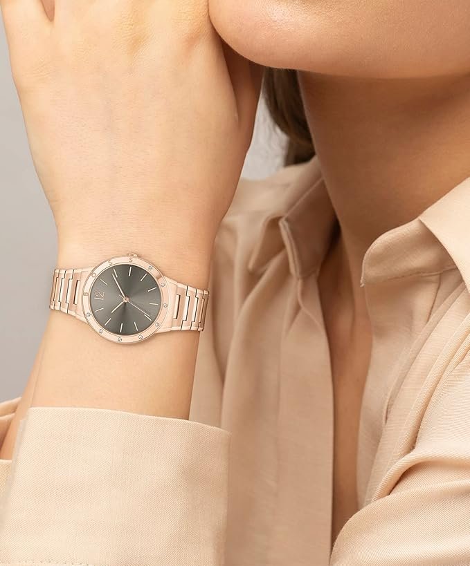 ساعة هوجو بوس Hugo Boss للنساء اصلية موديل 1502651 لون بني و استيك معدن ستانلس لون روز جولد.
