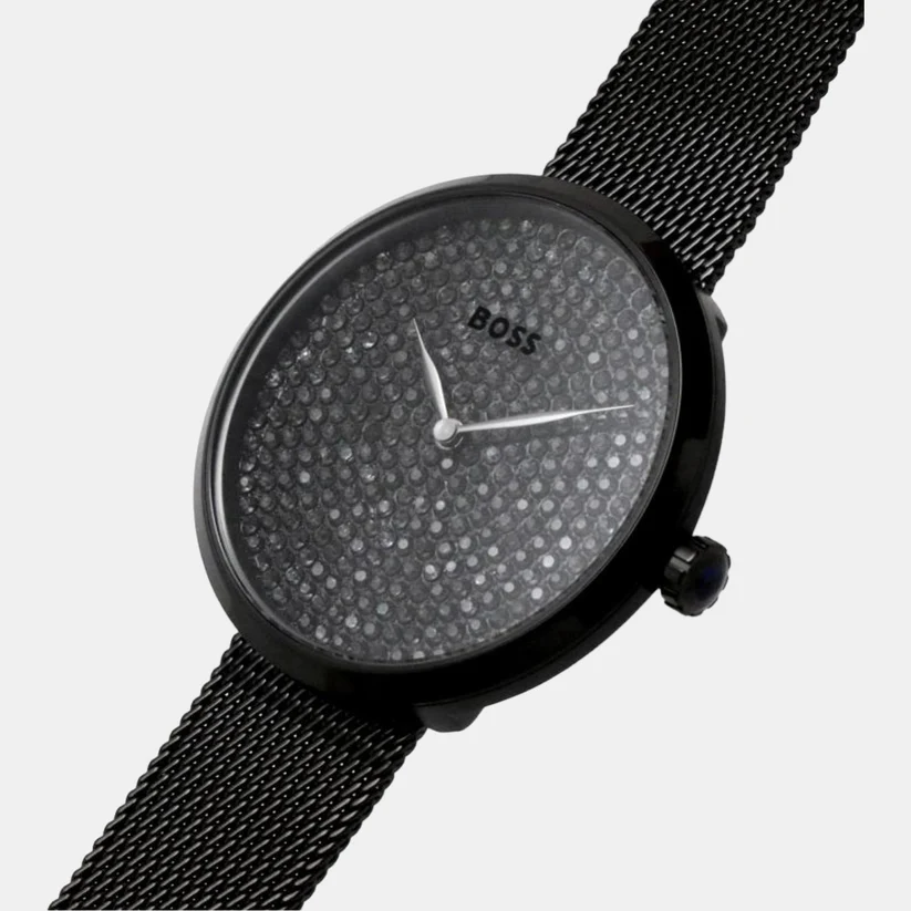 ساعة هوجو بوس Hugo Boss للنساء أصلية موديل 1502658 Praise لون اسود و استيك معدن ستانلس ستيل لون اسود.