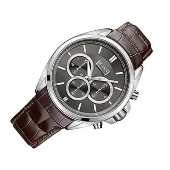 ساعة هوجو بوس للرجال اصلية موديل Driver 1513035 لون اسود واستيك جلد طبيعي لون بنى.