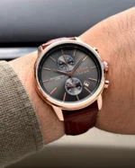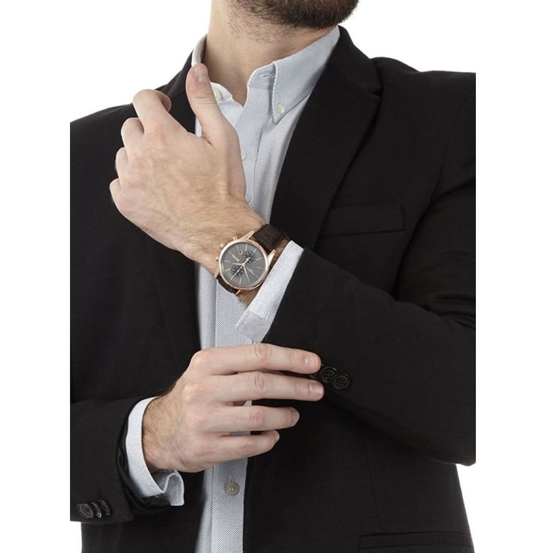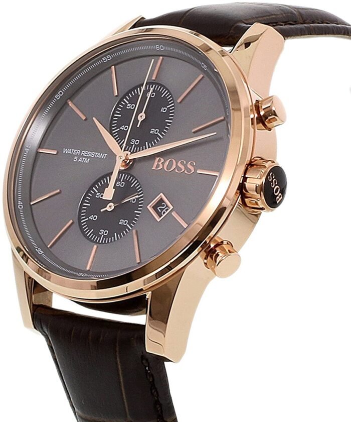 ساعة هوجو بوس للرجال اصلية موديل Jet 1513281 لون رمادي واستيك جلد طبيعي لون بنى.