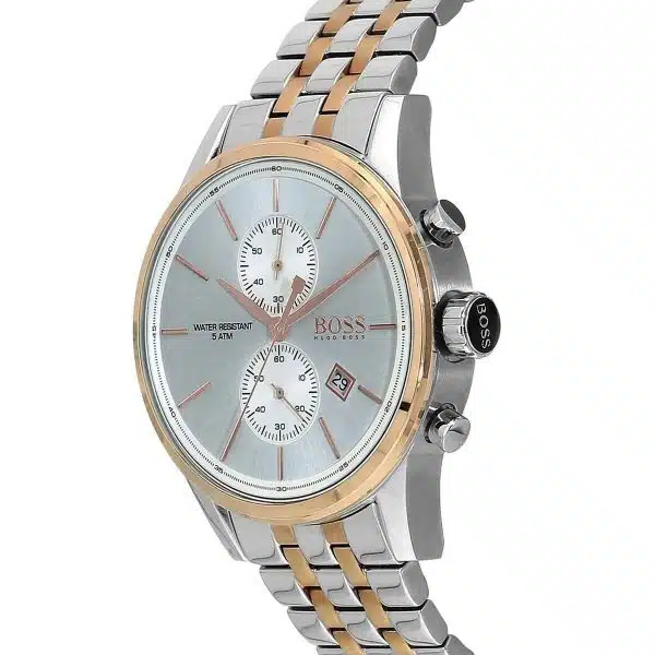 ساعة هوغو بوس للرجال اصلية موديل (جيت) Jet 1513385 بلون فضي واستيك معدن لون فضي * روز جولد.