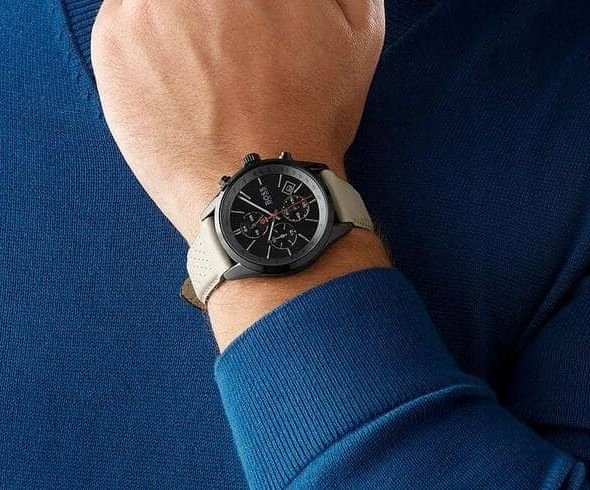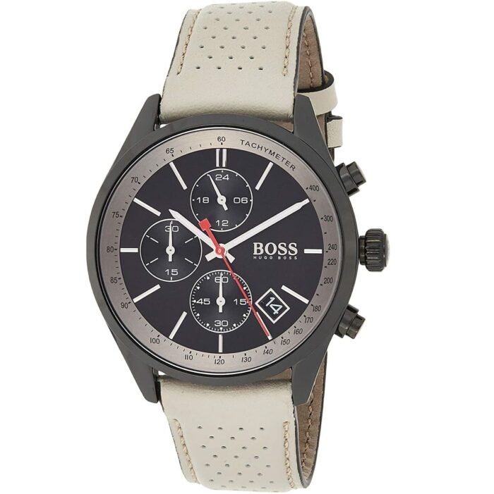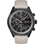 ساعة هوجو بوس للرجال اصلية موديل Grand Prix 1513562 لون اسود واستيك جلد طبيعي لون بيج.