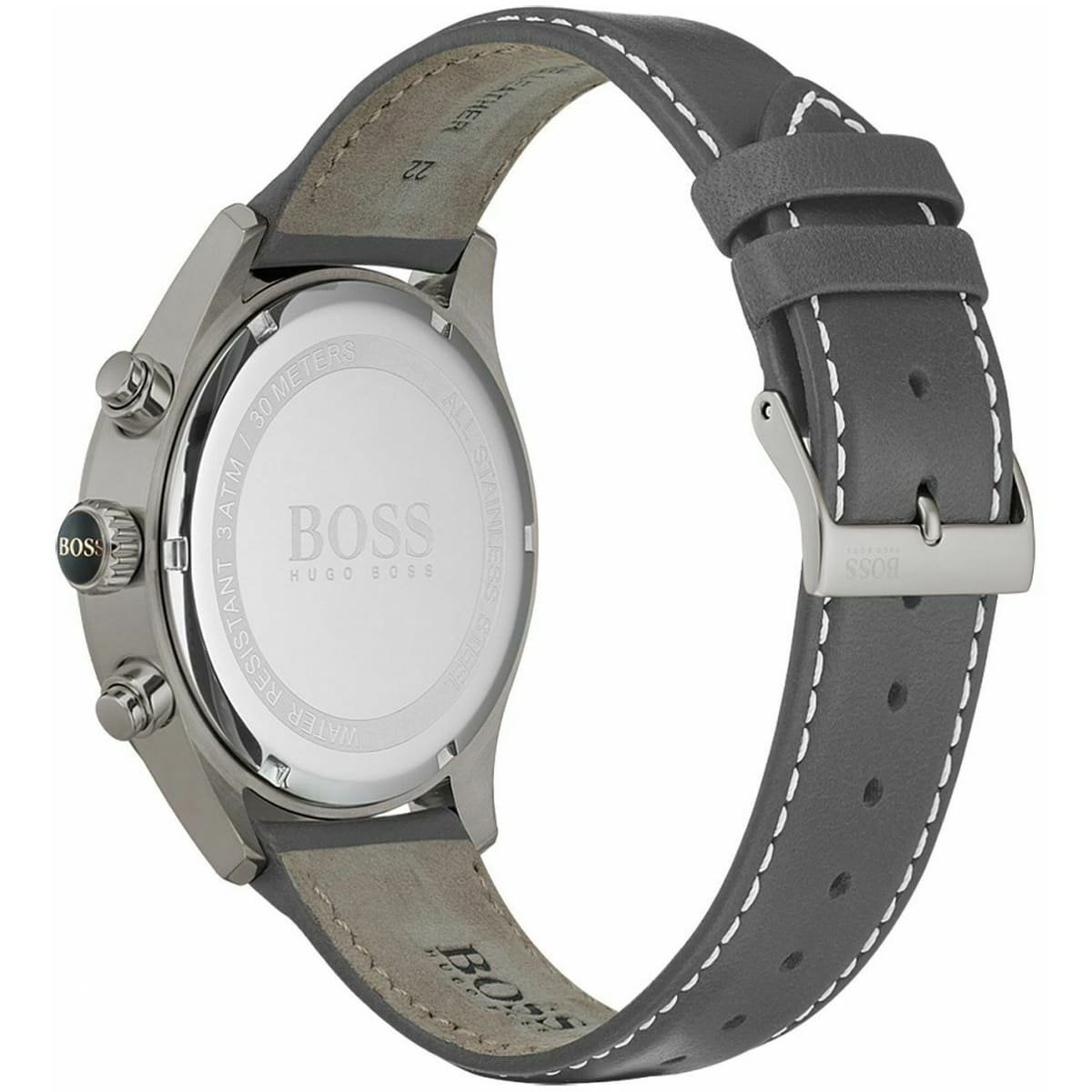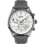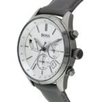 ساعة هوجو بوس للرجال اصلية موديل Grand Prix 1513633 لون فضي واستيك جلد لون رمادي