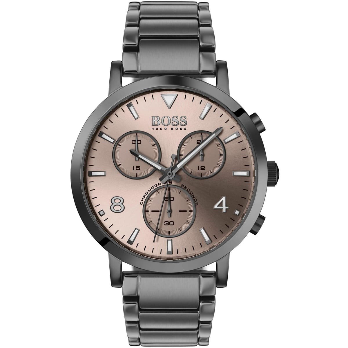 ساعة هوغو بوس للرجال اصلية موديل (سبيريت) Spirit 1513695 بلون روز جولد واستيك معدن لون رمادي.