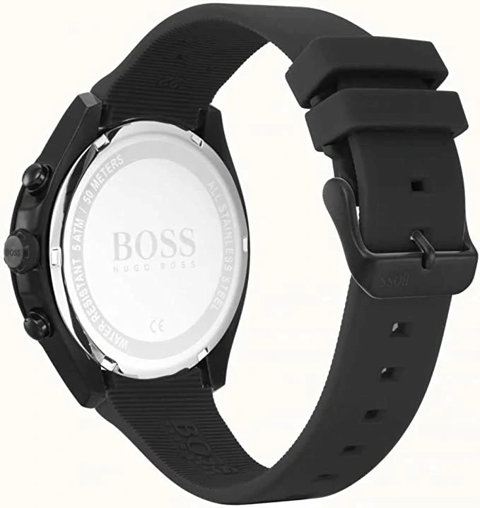 ساعة هوجو بوس اصليه للرجال موديل 1513720 لون اسود واوستيك سيليكون مطاط لون اسود.