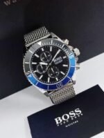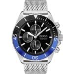 ساعة هوجو بوس للرجال اصلية موديل Ocean Edition 1513742 لون اسود واستيك معدن ستانلس لون فضي.