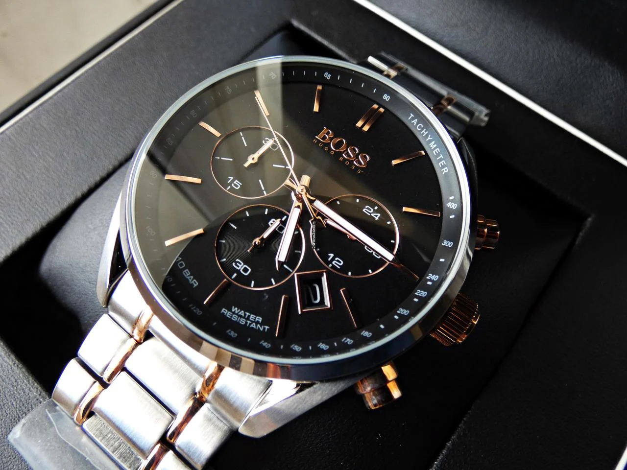 ساعة هوجو بوس للرجال أصلية موديل (شامبيون) Champion 1513819 لون اسود و استيك معدن لون فضي * ذهبي.