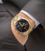 ساعة هوجو بوس للرجال اصلية موديل 1513848 لون اسود واستيك معدن ستانلس لون ذهبي.