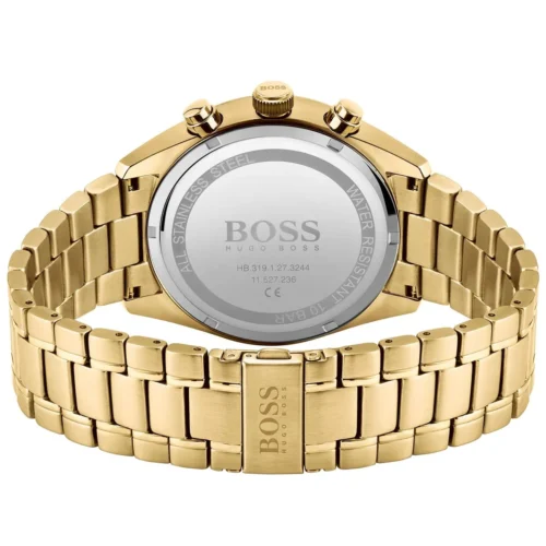 ساعة هوجو بوس للرجال اصلية موديل 1513848 لون اسود واستيك معدن ستانلس لون ذهبي.