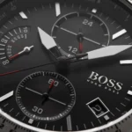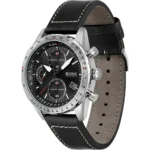 ساعة هوجو بوس للرجال اصلية موديل (Chronograph) 1513853 لون اسود واستيك جلد طبيعي لون اسود.