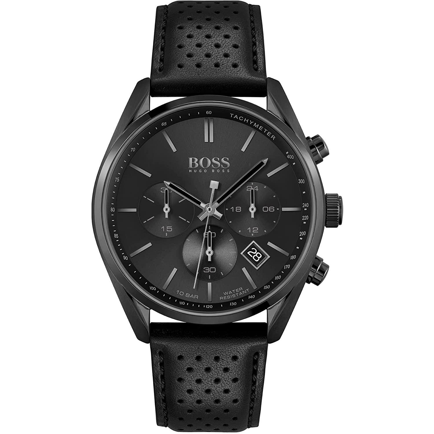 ساعة هوجو بوس للرجال أصلية موديل (شامبيون) Champion 1513880 بلون اسود و استيك جلد طبيعي بلون اسود.