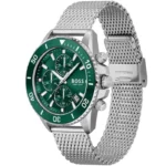 ساعة هوجو بوس للرجال اصليه موديل 1513905 لون اخضر واوستيك معدن ستانلس لون فضي.