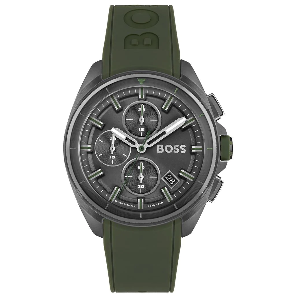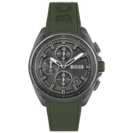 ساعة هوجو بوس للرجال اصلية موديل 1513952 لون رمادي و اوستيك سيليكون مطاط لون اخضر.
