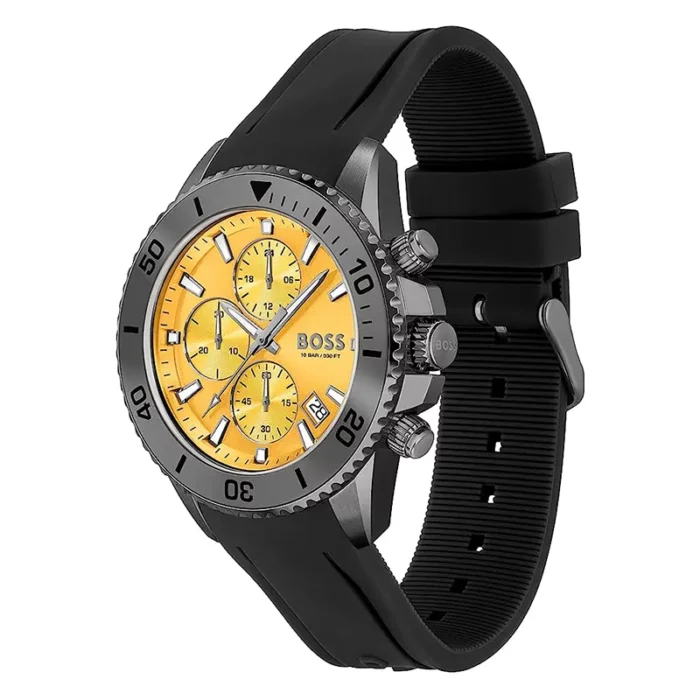 ساعة هوجو بوص اصليه للرجال موديل 1513968 بلون اصفر و اوستيك رابر مطاط بلون اسود.
