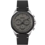 ساعة هوغو بوس للرجال اصلية موديل (كلاود) CLOUD 1514014 بلون اسود واستيك جلد طبيعي لون اسود