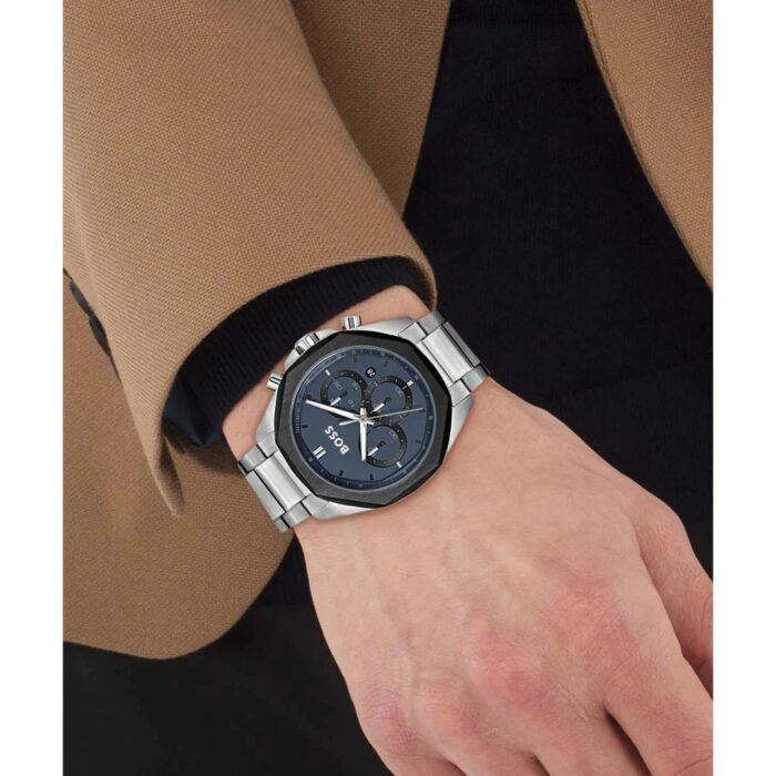 ساعة هوجو بوس للرجال اصلية موديل (كلاود) CLOUD 1514015 لون ازرق واستيك معدن ستانلس لون فضي