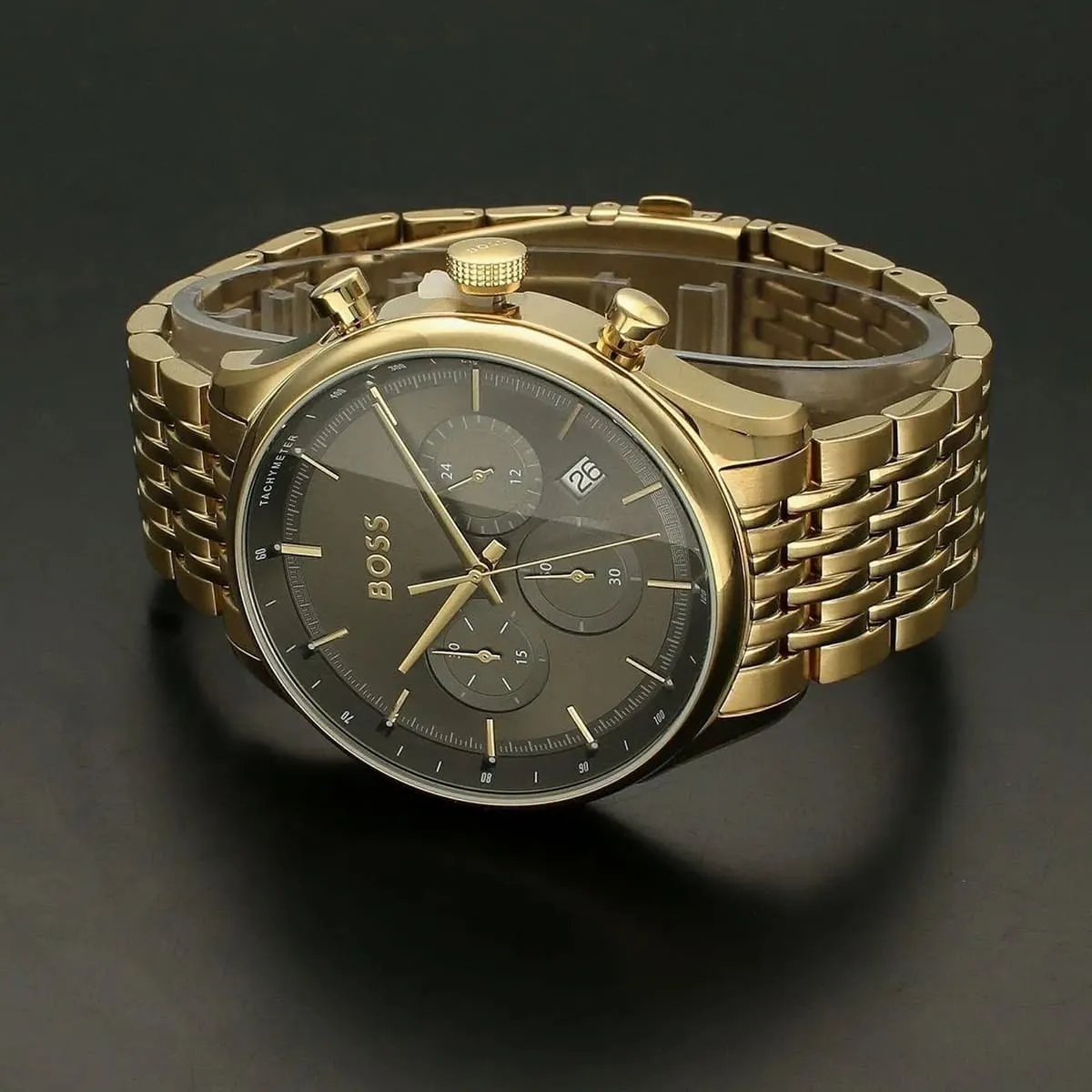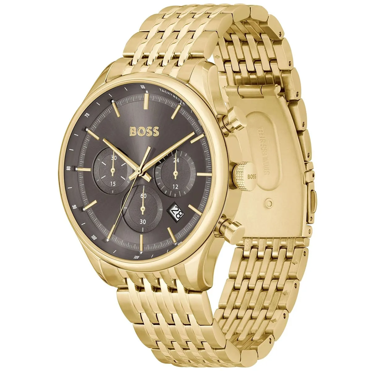 ساعة هوجو بوس Hugo Boss للرجال أصلية موديل 1514051 Gregor لون رمادي و استيك معدن ستانلس ستيل لون ذهبي.
