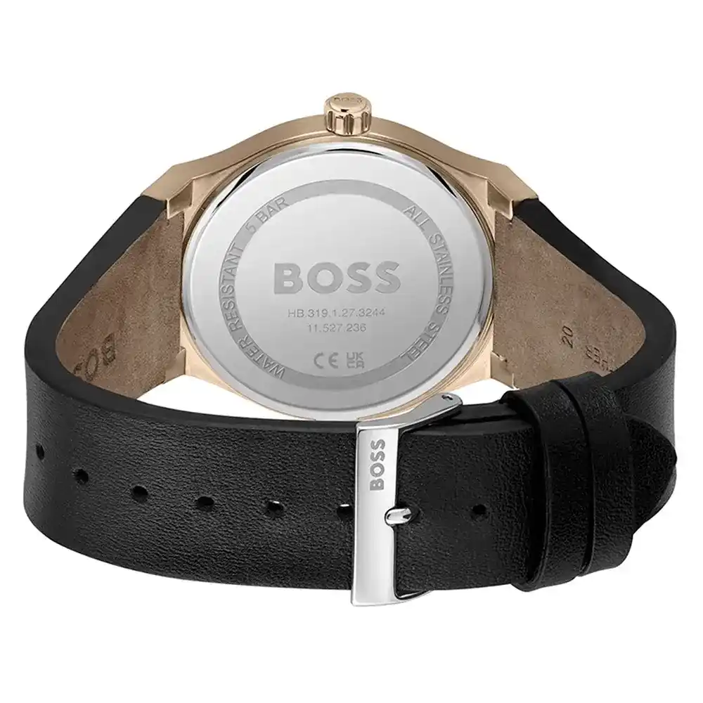 ساعة هوجو بوس Hugo Boss للرجال أصلية موديل 1514080 لون اخضر (زيتي) و استيك جلد طبيعي لون اسود.