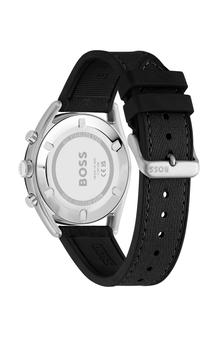 ساعة هوجو بوس للرجال أصلية موديل 1514091 لون اسود و اوستيك اسود سيليكون مطاط لون اسود.