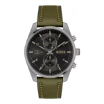ساعة هوجو بوس Hugo Boss أصليه للرجال موديل 1514148 لون اسود و استيك جلد لون اخضر.