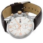 ساعة تومي هيلفيغر للرجال اصلية موديل 1710360بلون ابيض واستيك جلد لون بني