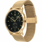 ساعة تومي هيلفيغر اصليه للرجال موديل 1710386 لون اسود واوستيك معدن ستانلس لون ذهبي.