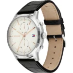 ساعة تومي هيلفيغر Tommy Hilfiger للرجال أصلية موديل 1710434 Easton لون فضي و استيك جلد طبيعي لون اسود.