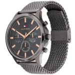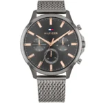 ساعة تومي هيلفيغر Tommy Hilfiger للرجال أصلية موديل 1710500 Ryder لون اسود و استيك معدن ستانلس ستيل لون رمادي.