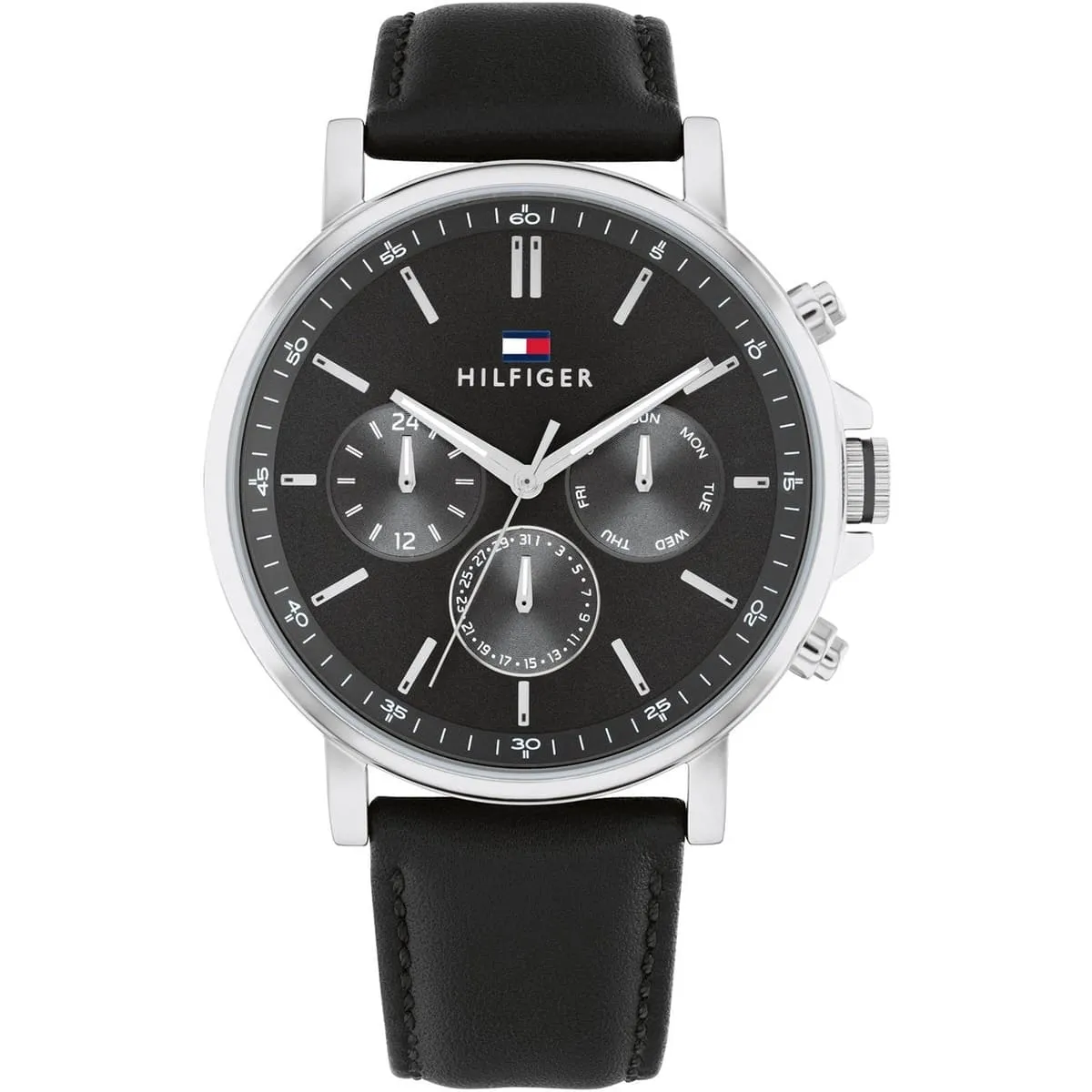 ساعة تومي هيلفيغر Tommy Hilfiger للرجال أصلية موديل 1710586 لون أسود و استيك جلد طبيعي لون أسود.