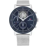 ساعة تومي هيلفيغر Tommy Hilfiger للرجال أصلية موديل 1710609 لون ازرق و استيك معدن ستانلس لون فضي.