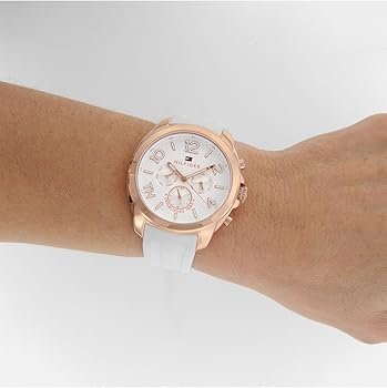 ساعة تومي هيلفيغر للنساء أصليه موديل 1781388 لون ابيض و استيك سيليكون مطاط لون ابيض.