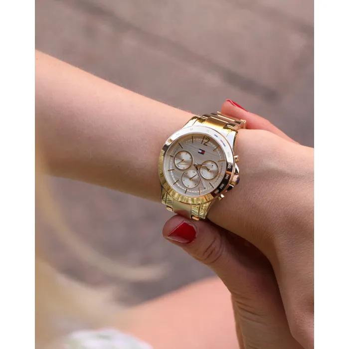 ساعة تومي هيلفيغر للنساء أصلية موديل Haven 1782195 لون ذهبي و استيك معدن ستانلس لون ذهبي.