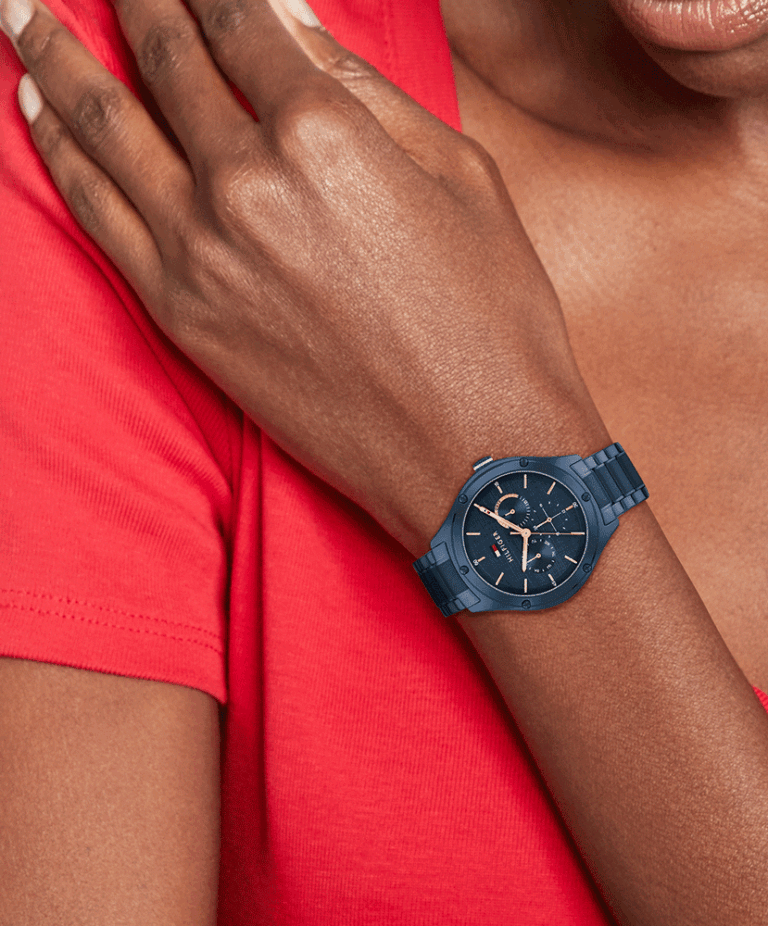 ساعة تومي هيلفيغر Tommy Hilfiger للنساء أصلية موديل LEXI 1782656 لون ازرق و استيك معدن ستانلس ستيل لون ازرق.