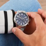 ساعة تومي هيلفيغر للرجال اصلية موديل (ترينت) Trent 1791053 لون ازرق واستيك معدن ستانلس لون فضي.