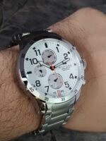 ساعة تومي هيلفيغر للرجال اصلية موديل Trent 1791140 لون ابيض واستيك معدن ستانلس لون فضي