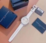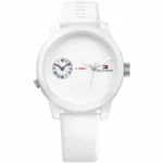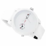 ساعة تومي هيلفيغر للرجال أصلية موديل (دنيم) Denim 1791324 لون ابيض و استيك سيليكون مطاط لون ابيض.