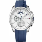ساعة تومي هيلفيغر للرجال اصلية موديل (ديكر) Decker 1791349 لون ابيض واستيك سيليكون مطاط لون ازرق.