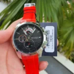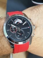 ساعة تومي هيلفيغر للرجال أصلية موديل (ديكر) Decker 1791351 لون اسود و استيك سيليكون مطاط لون احمر.