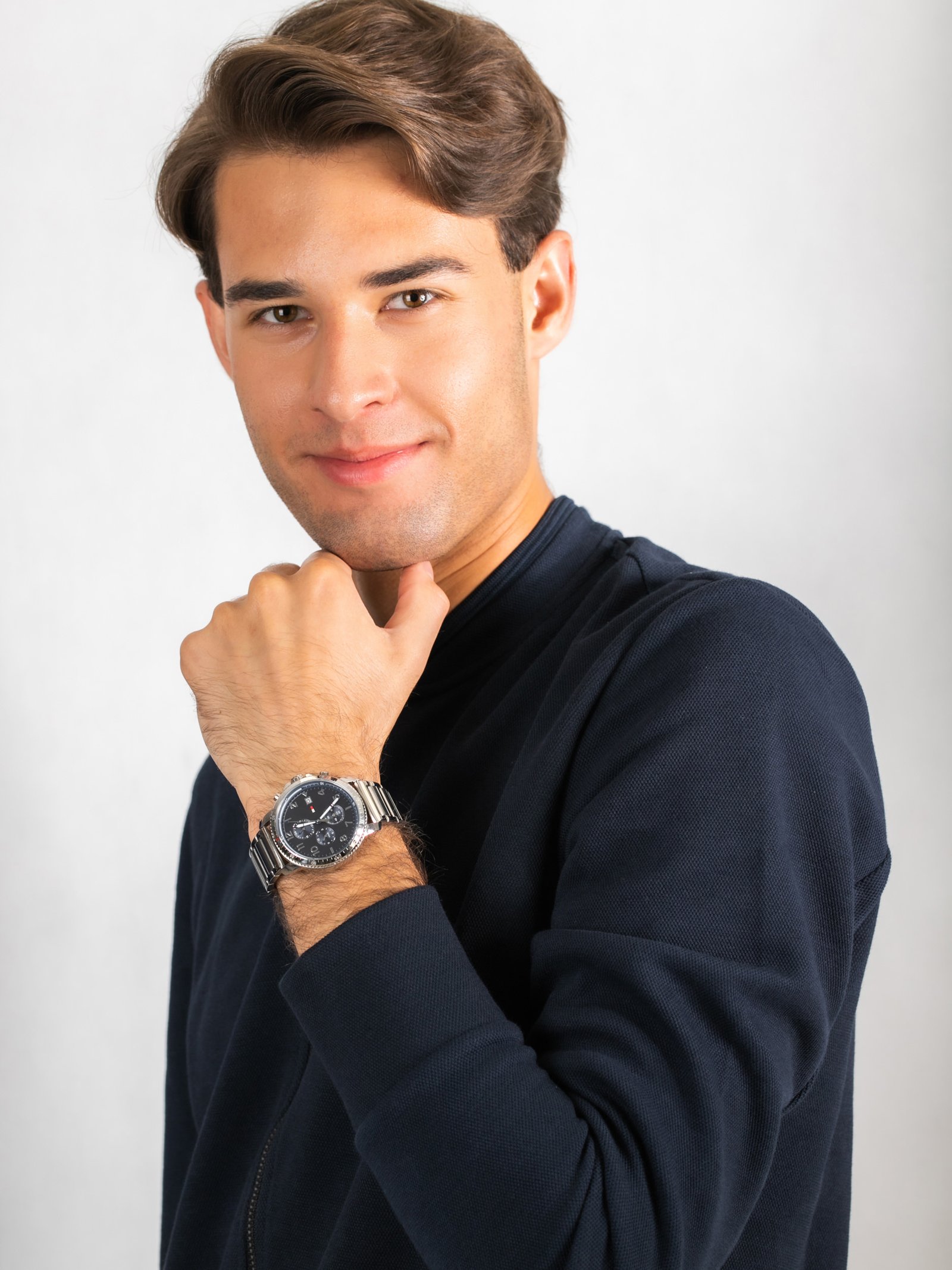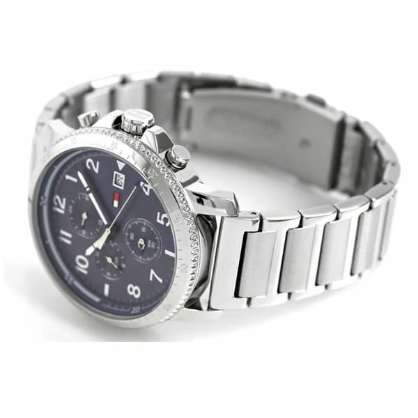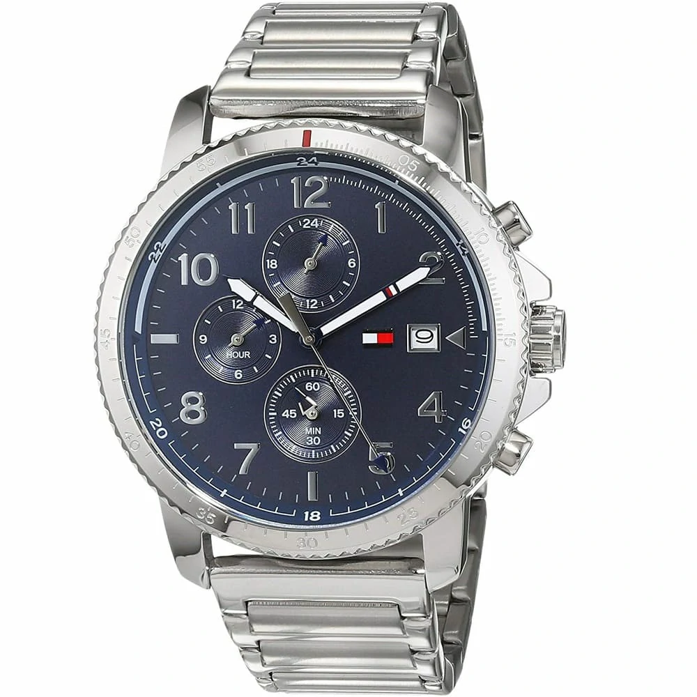 ساعة تومي هيلفيغر للرجال اصلية موديل (ترافيس) Travis 1791360 لون ازرق واستيك معدن ستانلس لون فضي.