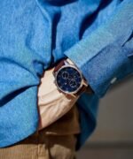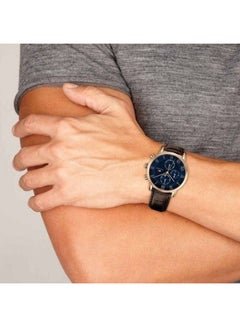 ساعة تومي هيلفيغر للرجال اصلية موديل Kane 1791399 لون ازرق واستيك جلد طبيعي لون بني.