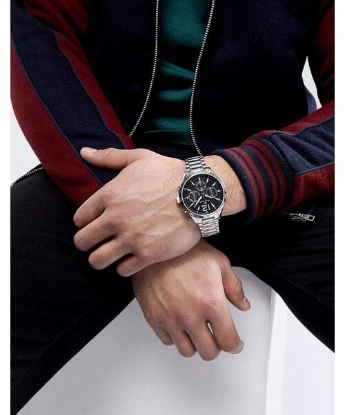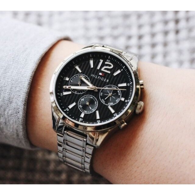 ساعة تومي هيلفيغر للرجال اصلية موديل Gavin 1791469 لون اسود واستيك معدن ستانلس لون فضي.