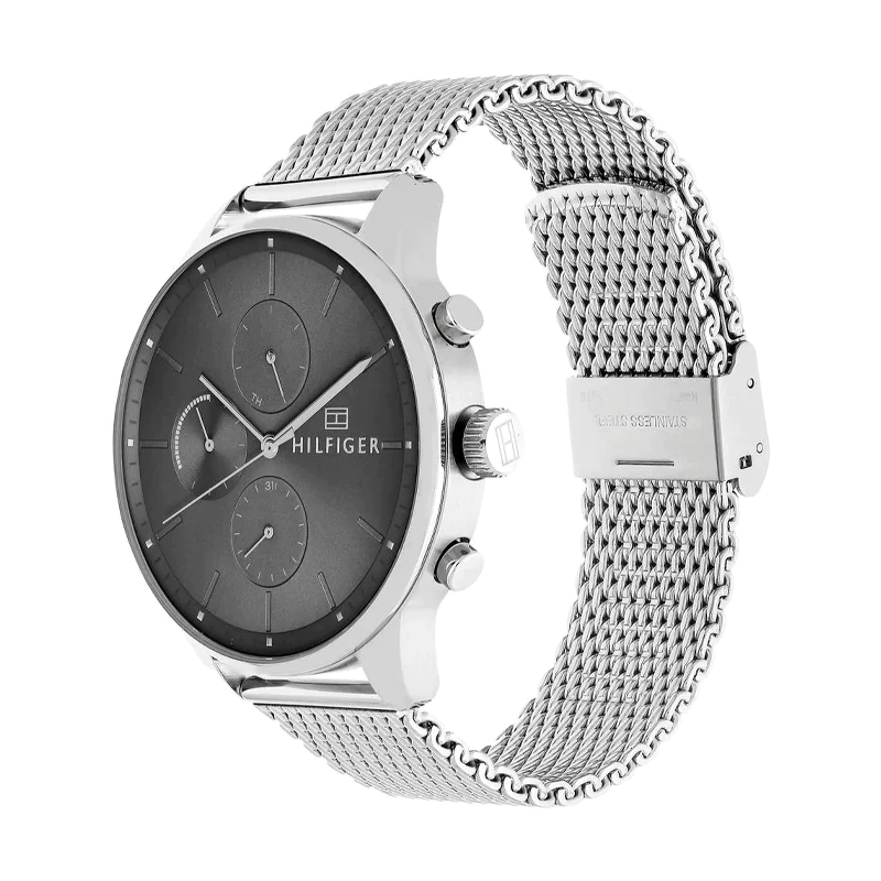 ساعة تومي هيلفيغر للرجال اصليه موديل 1791484 رمادي واوستيك معدن بلون فضي.