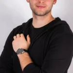 ساعة تومي هيلفيغر Tommy Hilfiger للرجال أصلية موديل 1791488 Chase لون اسود و استيك جلد طبيعي لون اسود.