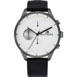 ساعة تومي هيلفيغر للرجال اصليه موديل 1791489 بلون ابيض واوستيك جلد طبيعي بلون اسود.