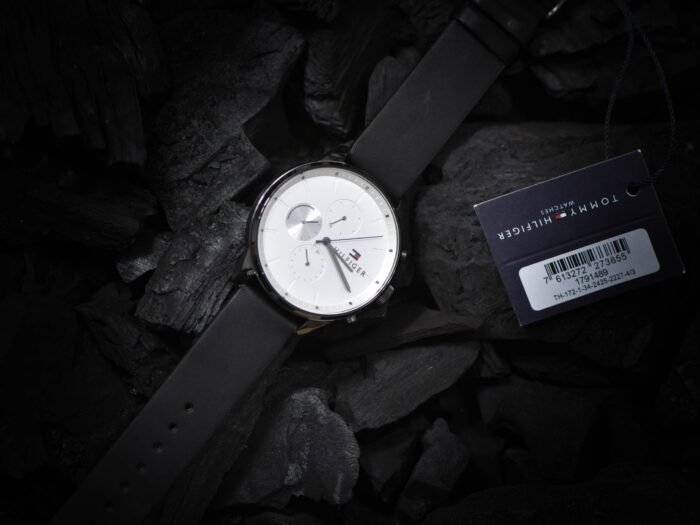 ساعة تومي هيلفيغر للرجال اصليه موديل 1791489 بلون ابيض واوستيك جلد طبيعي بلون اسود.