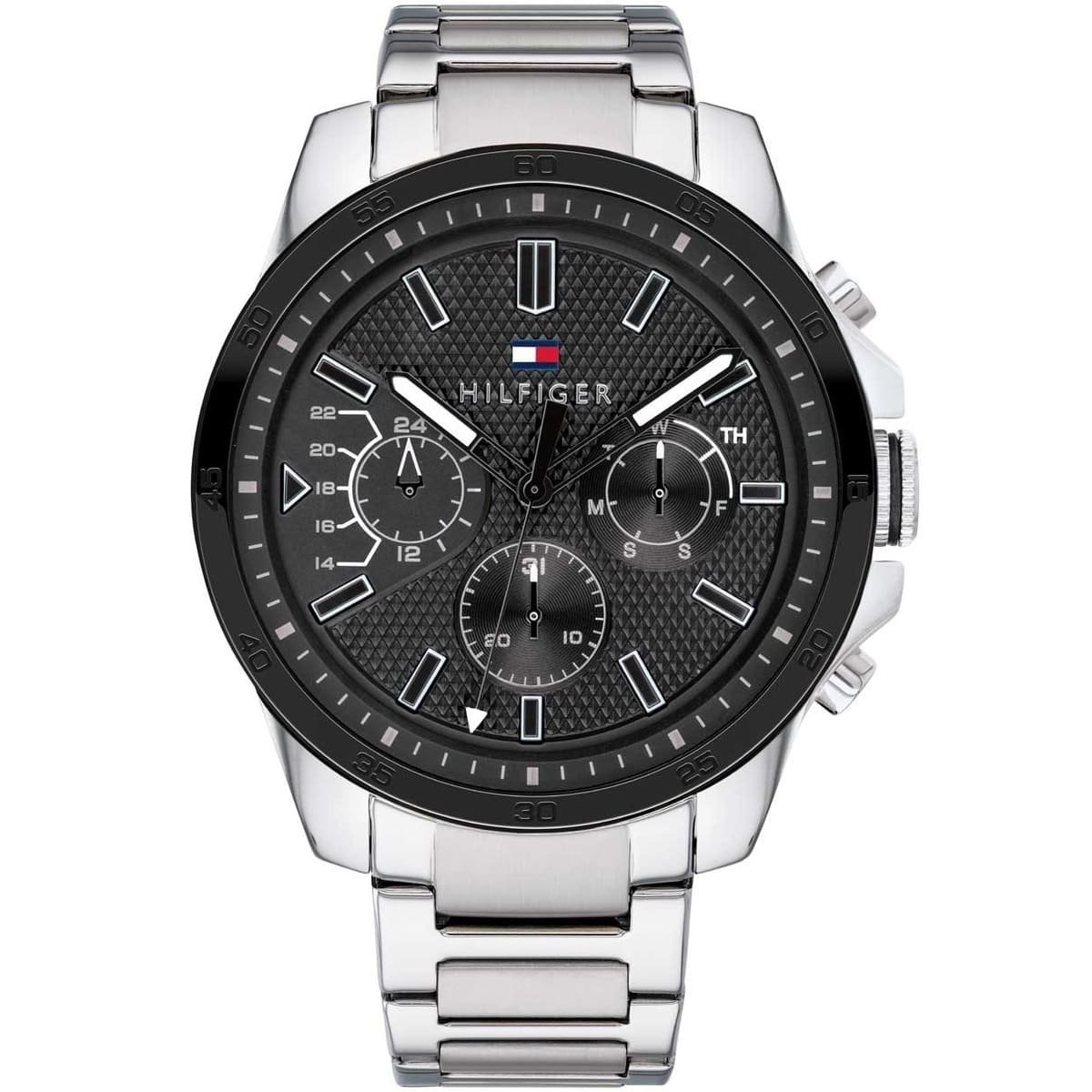 ساعة تومي هيلفيغر للرجال اصلية موديل Decker 1791564 لون اسود واستيك معدن ستانلس لون فضي.