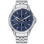ساعة تومي هيلفيغر للرجال اصلية موديل Shawn 1791612 لون ازرق واستيك معدن ستانلس لون فضي.