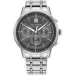 ساعة تومي هيلفيغر Tommy Hilfiger للرجال أصلية موديل (كايل) 1791632 Kyle لون اسود و استيك معدن لون فضي.